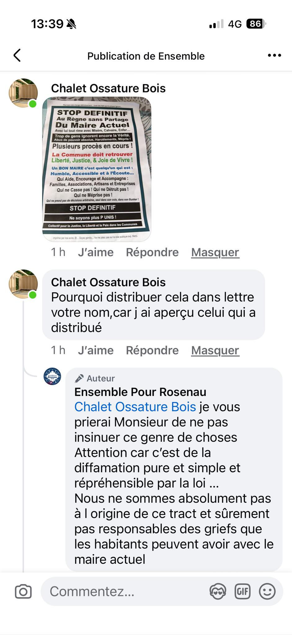 Et nous ne sommes absolument responsables en rien si des personnes du villages ressentent le besoin de publier leurs griefs envers le maire actuel.